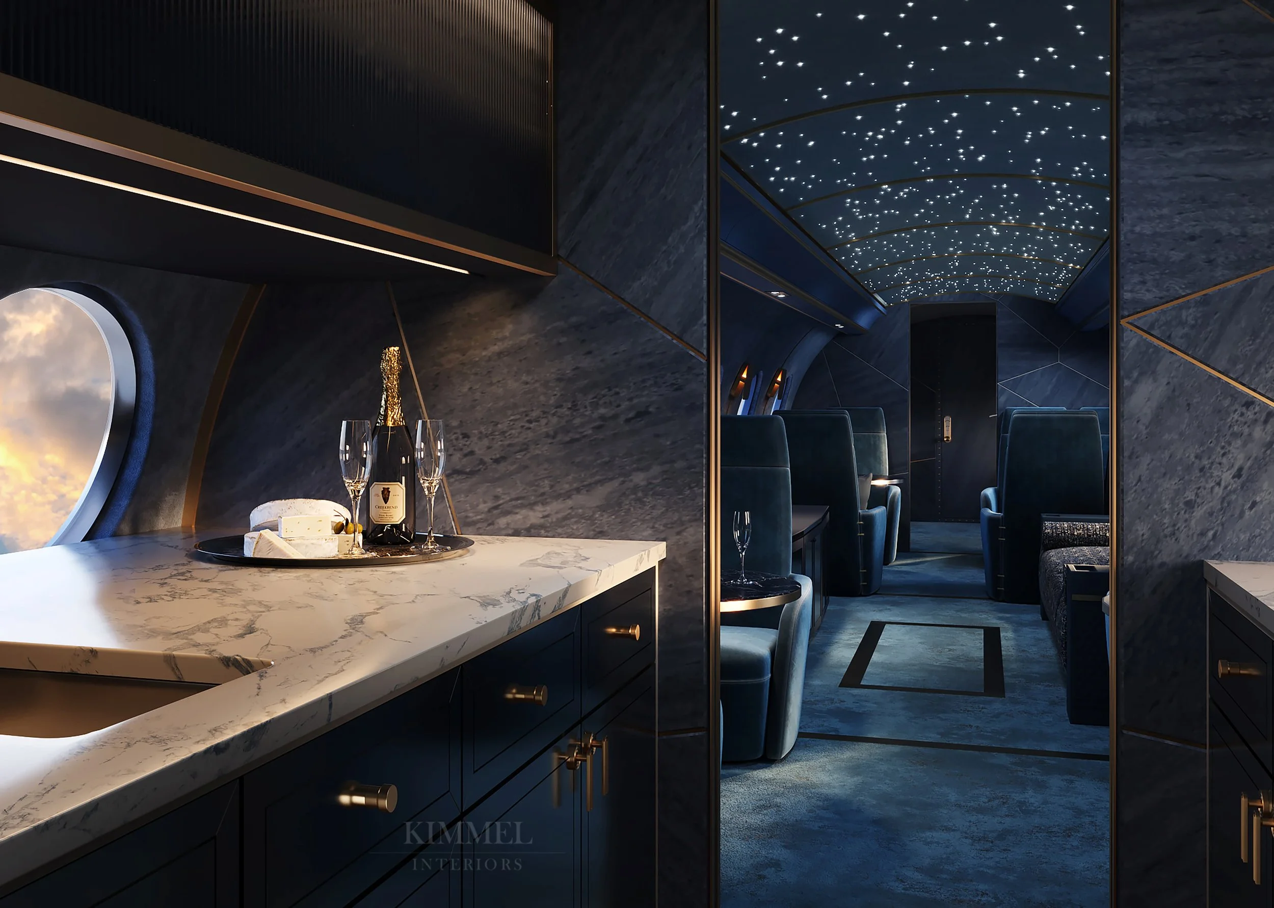 Kimmel Interiors designs large-cabin business jet interiors, bringing a deep understanding of aircraft constraints, materials, and passenger experience at altitude.